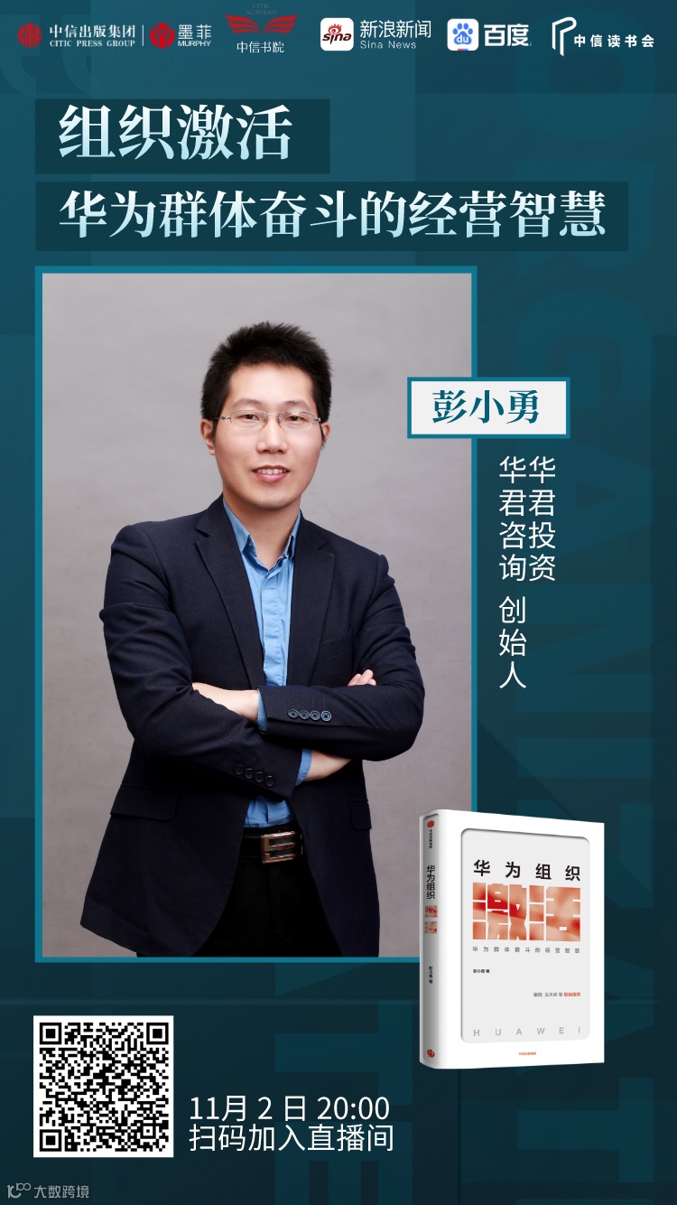 11月2日,我们特邀《华为组织激活》作者彭小勇老师,为大家分享《组织激活——华为群体奋斗的经营智慧》。
