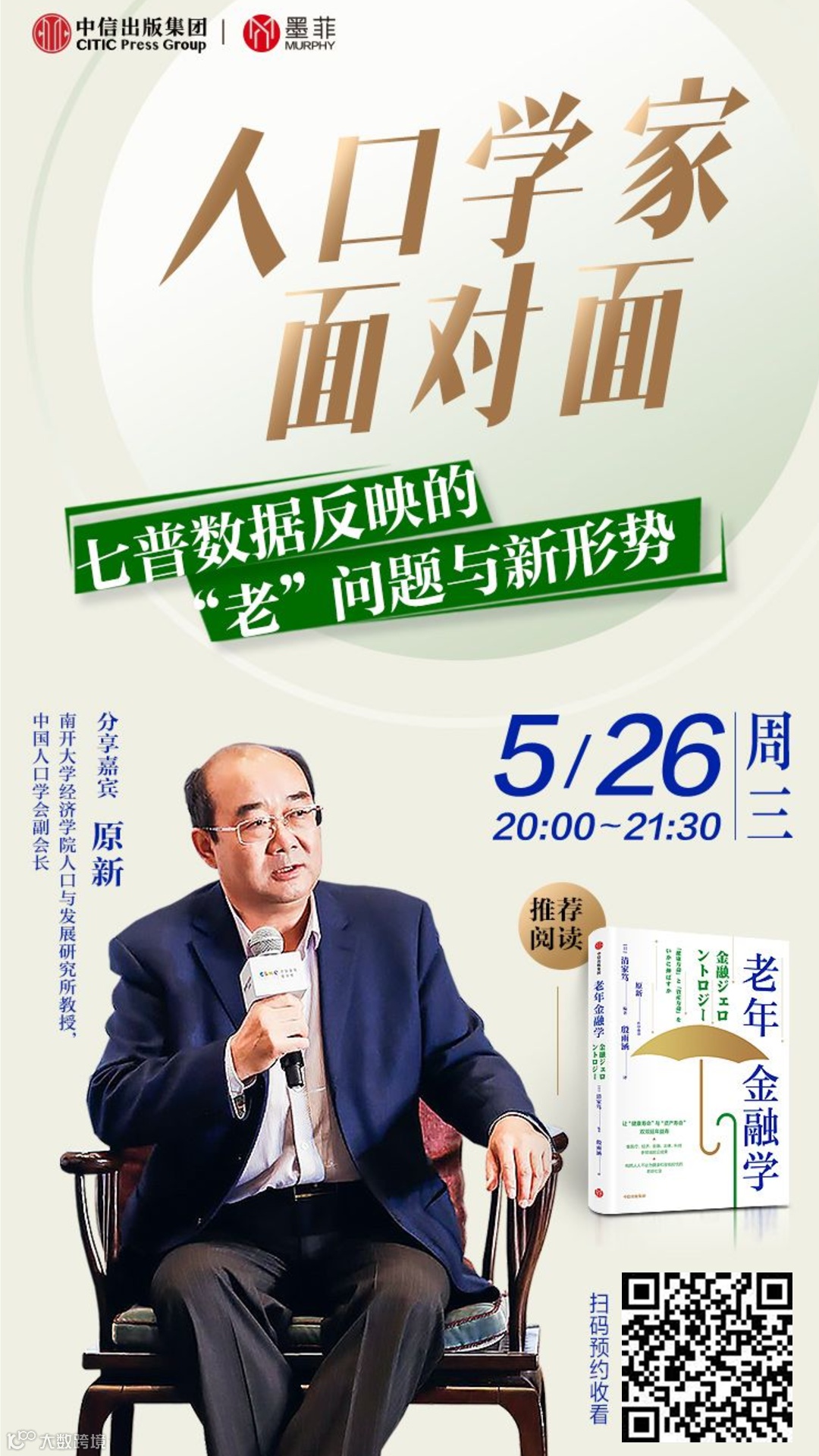 中信出版墨菲特邀中国人口学会副会长、南开大学经济学院人口与发展研究所教授原新教授为我们进行精彩分享。