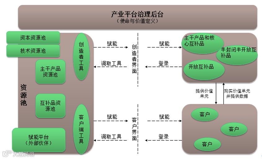 通过搭建共享产业设施,开放赋能和动态吞吐社会化专业资源,为顾客提供包括核心产品与互补品、外延互补品与多样化互补品组成的丰富解决方案。
