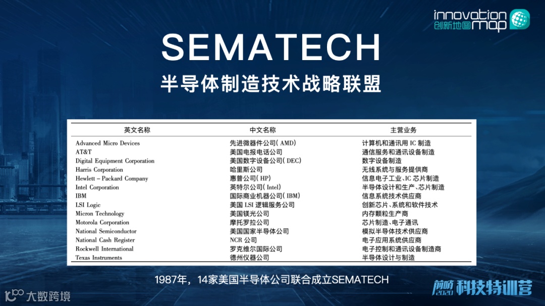 芯片产业就是个明显的例子:1971年Intel研发出了CPU,标志着个人计算机时代的来临,到了80年代,感受到日本的压力,美国各大IT公司就开始纷纷合作,到1987年,美国最大的14家半导体公司联合成立了一家独立的研发机构,叫Sematech,并且出钱出力合作研发,促成了美国IT产业的振兴。
