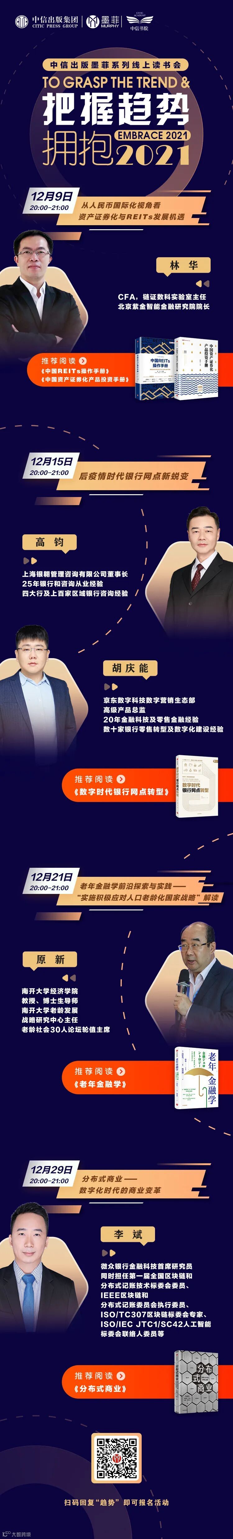 为此,中信出版墨菲特邀领域专家从资产、银行、养老、商业模式等4个维度来探讨,助你把握趋势,拥抱2021。