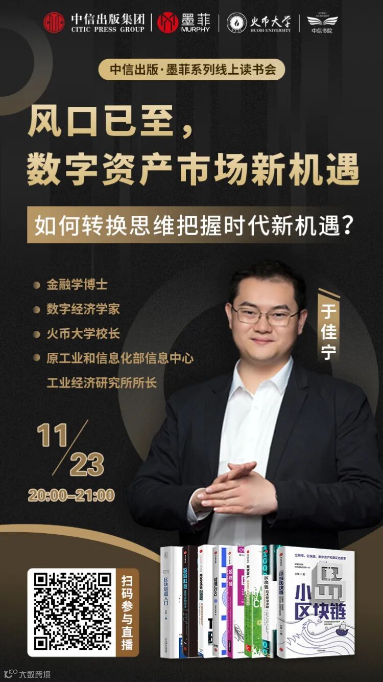 为此,中信出版墨菲特邀金融学博士、火币大学校长于佳宁,为我们解答如何转换思维把握时代新机遇?