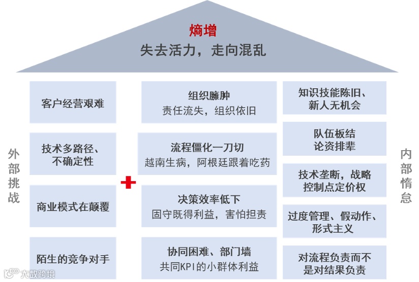 企业熵增体现在不同阶段的各个方面,主要有以下几种: