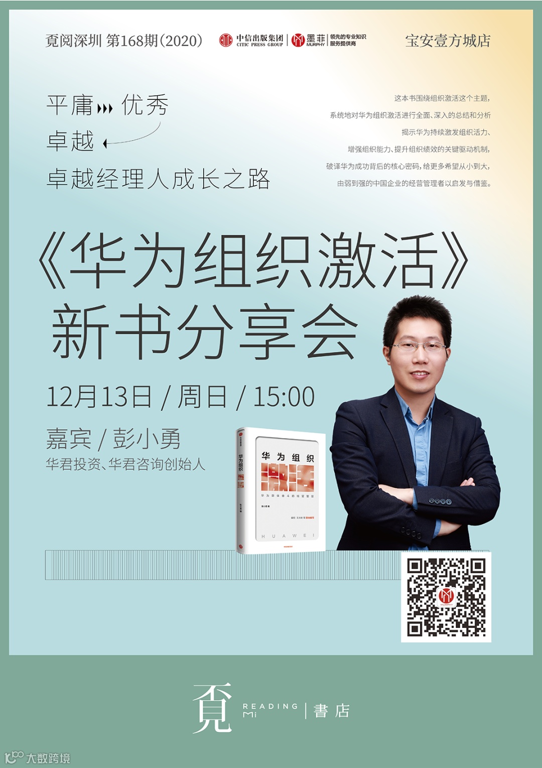 想了解更多内容,可以参加2020年12月13 《华为组织激活》新书发布会。