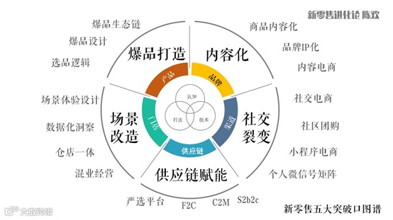 在新零售的环境下,孤立的谈产品或者营销是没有意义的。爆品打造、内容化、社交裂变、供应链赋能、场景改造是五个大方向,组合拳才是王道。