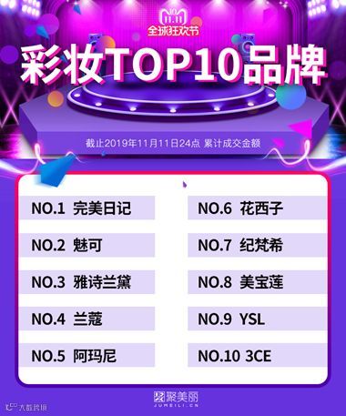 花西子没有选择大渠道,而是新渠道。以内容种草为起点,带货起量。来看看效果。2019年双十一彩妆成交金额排名第六,超过纪梵希、美宝莲、YSL等一众大牌。开场一小时就破亿。
