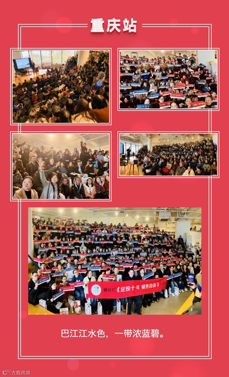 在《定投十年财务自由》一书面世之际,中信出版墨菲特邀银行螺丝钉进行了为期2个月的全国巡讲,为上海、北京、天津、广州、西安、成都、重庆……12座城市的书友带来一次思想上的盛宴。