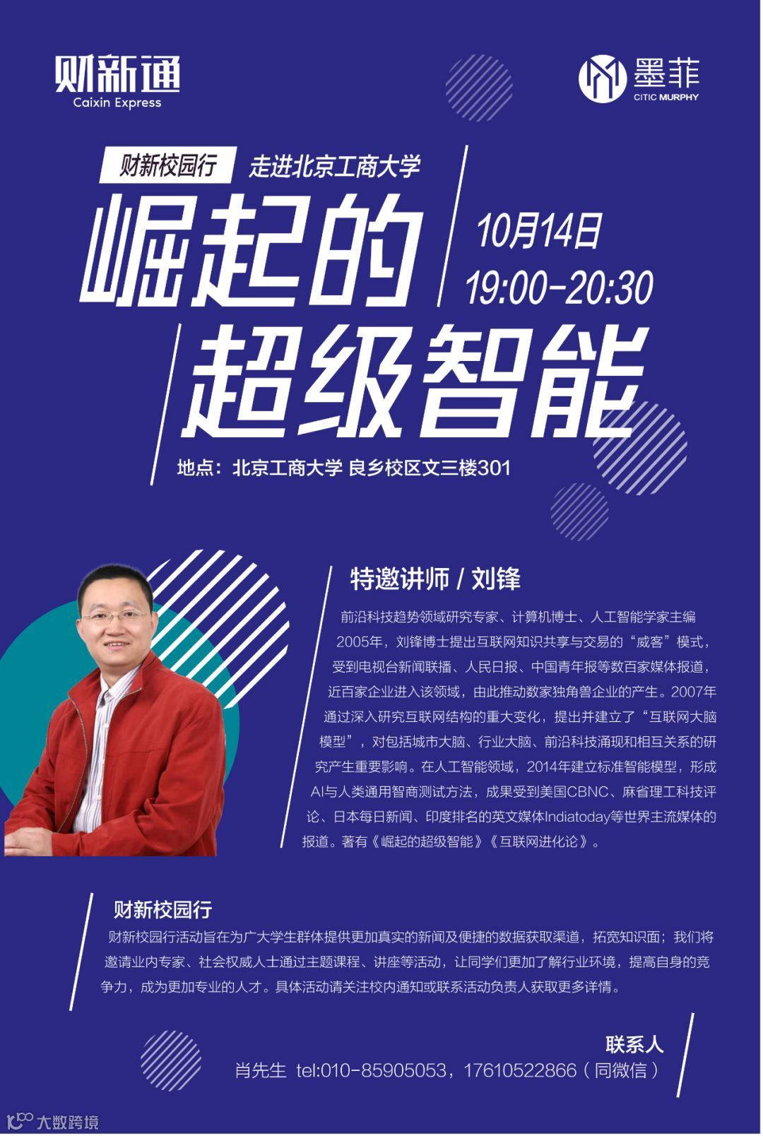 2019年10月14日,刘锋老师走进北京工商大学,与同学一起探讨#崛起的超级智能#。