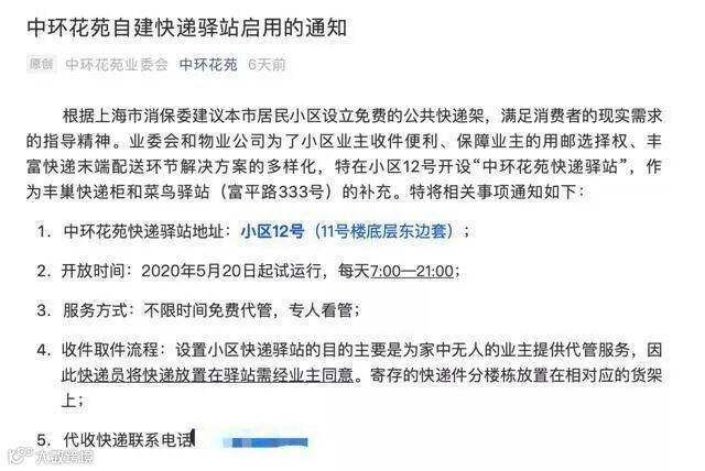 让丰巢陷入舆论中心的上海中环花苑在5月19日发布这样的一则通知,大意是: