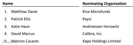 通过理事会投票选举的5位董事会成员如下: