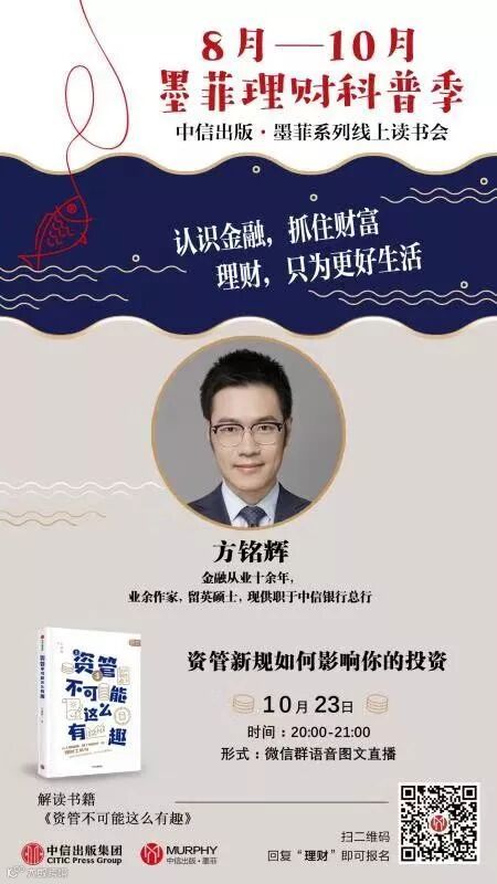 10月23日,《资管不可能这么有趣》作者方铭辉做客墨菲读书会,为大家分享资管新规下我们该如何投资?