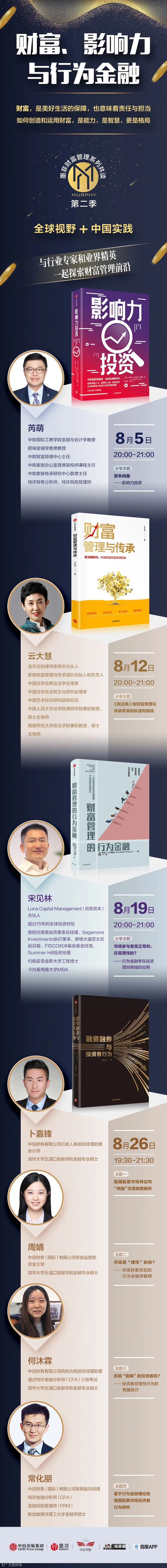 8月,中信出版墨菲开启财富管理系列共读第二季,以全球视野+中国实践,邀你与行业专家和业界精英一起探索财富管理前沿。