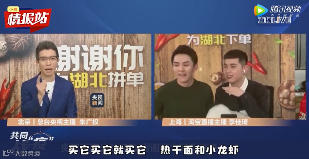4月6日晚,央视新闻主播朱广权和带货达人李佳琦通过“连麦”进行的隔空“云直播”,吸引了1091万人观看,两个小时的直播,累计卖出总价值4014万元的湖北商品。