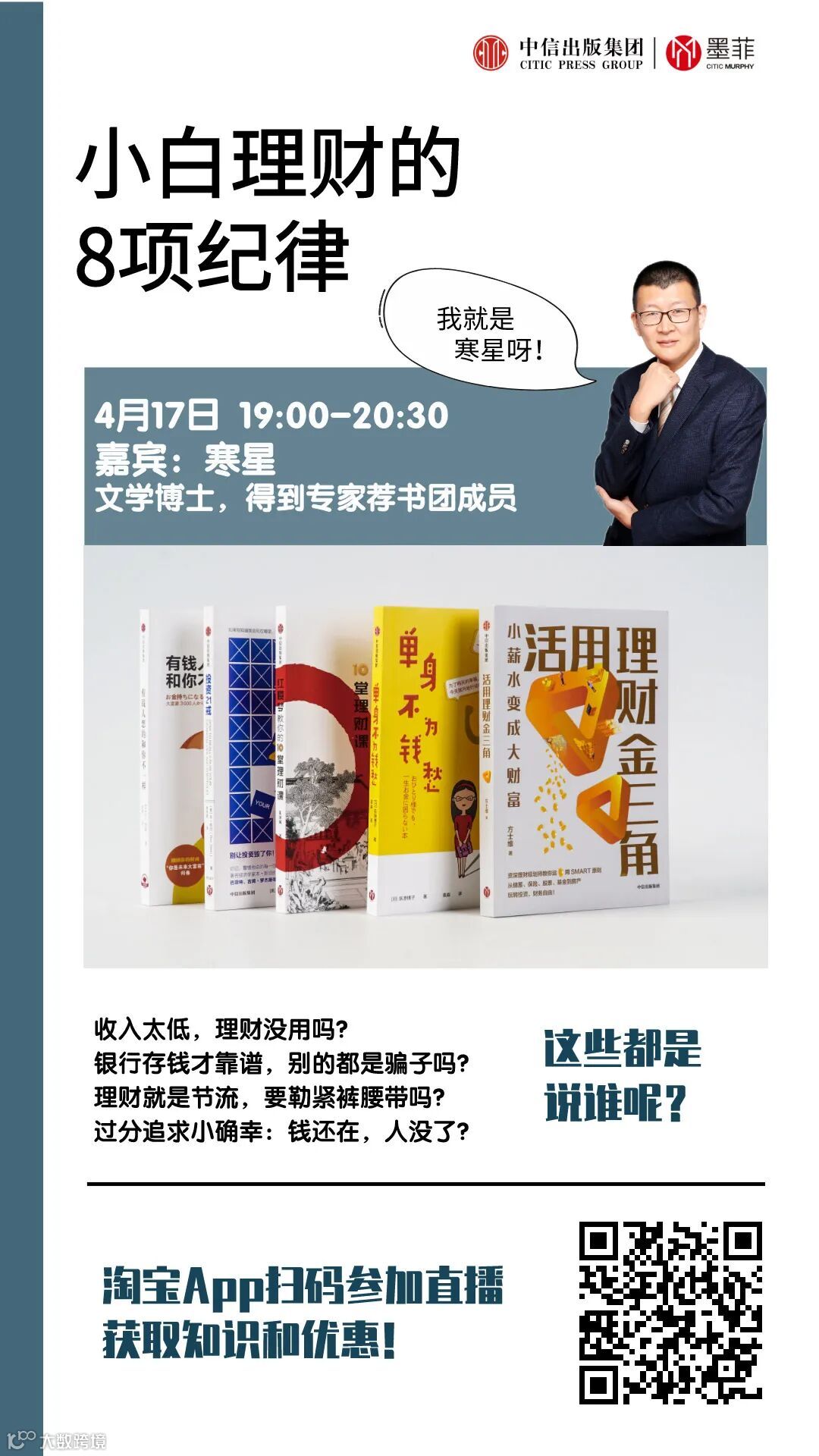 为此,中信出版墨菲特邀寒星老师为我们讲解小白理财的五大误区和八项纪律,他们分别是: