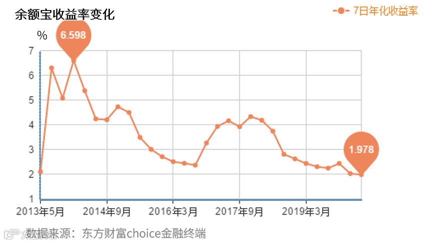昨天,余额宝七日年化收益率,第一次跌破2%了……