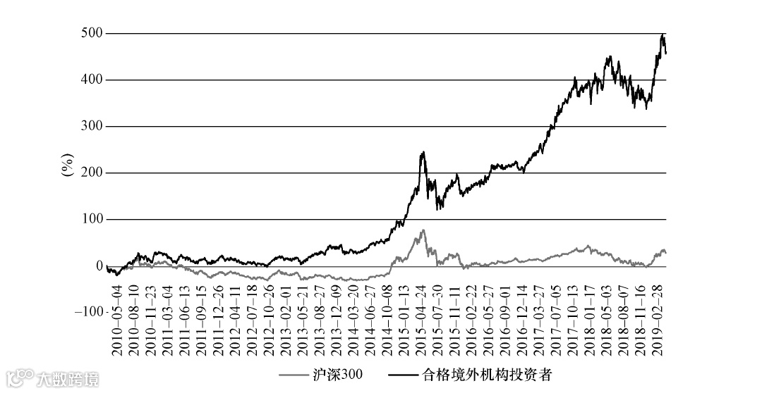 与此同时,我们还发现,在机构投资者当中,越是注重长期投资的(把股票当作投资公司的载体),收益越好。我们自己做过一个策略,跟踪合格境外机构投资者的长线持仓。这个策略表现非常好,从2010 年以来取得了近500%的收益率,而同期沪深300仅有26%的收益率,如下图所示。