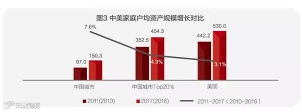 家庭户均净资产规模从2011年的90.7万元,增加到2017年的142.9万元,年均复合增长率为7.9%。