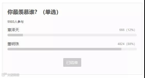 最近网上的一个投票分享给大家:章泽天和董明珠,你更羡慕谁?更想成为谁?