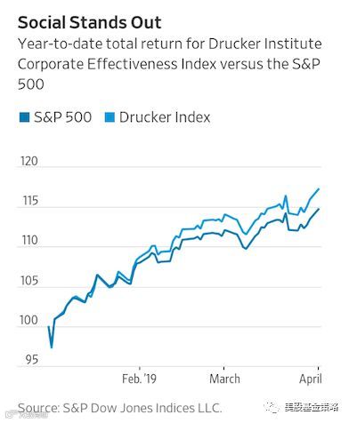 这家名为Drucker的机构研发出了一款指数:The Drucker Institute Corporate Effectiveness Index,该指数根据顾客满意度、员工参与感、创新能力和社会责任感等维度,筛选了100家成分股公司,不出意料的是科技公司市值占比最高,达到了34%,苹果、微软、谷歌均在其中。