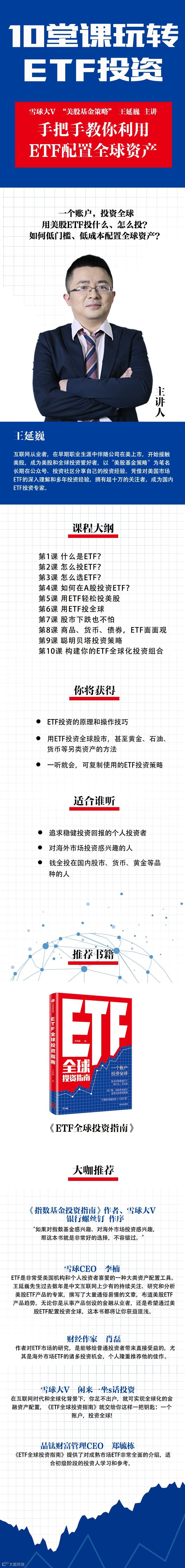 欢迎订阅《10堂课玩转ETF投资》,欢迎走进ETF投资的疆域,去发现,去探索,去赚钱!