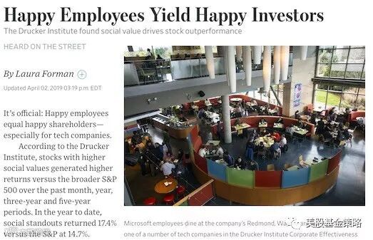 有趣的是,在近期的《华尔街日报》上,恰恰有篇员工满意度和投资相关的文章,其结论是根据一家机构的标准筛选分析,那些员工快乐度更高的公司,整体收益会超越市场水平。