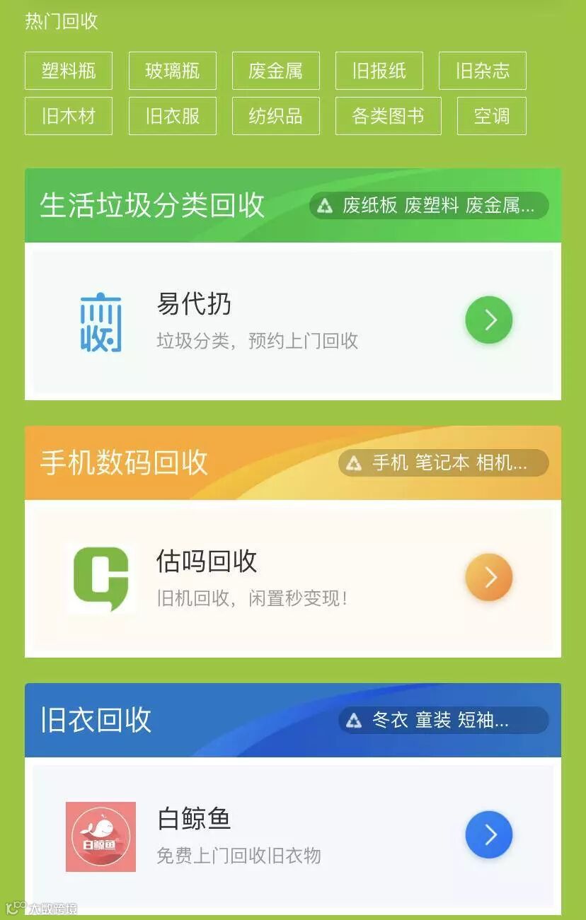 在支付宝中,就被我找到了垃圾、旧物回收的小程序。