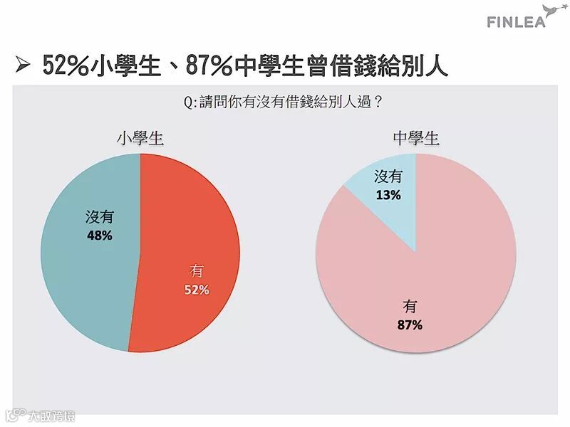 有52%的小学生及87%的中学生曾借钱给别人;