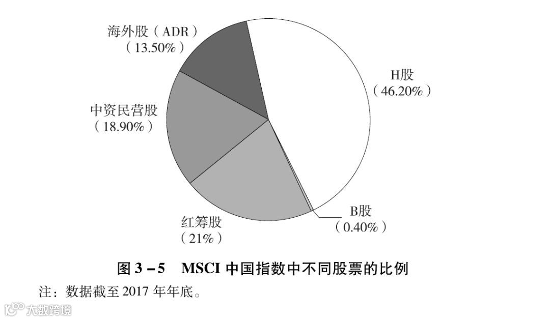 MSCI中国指数中不同股票的比例如图3-5所示。MSCI中国指数纳入中概股ADR后的占比如图3-6所示。
