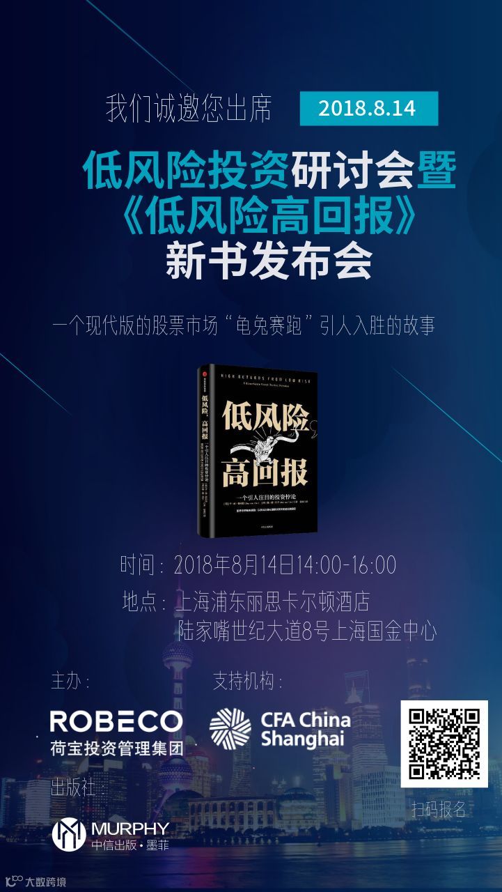 借此新书发布,中信出版墨菲图书工作室诚挚邀请证券投资领域专业投资者参加我们在8月14日举办的低风险投资研讨会,让投资界更了解这一个现代股票市场中“龟兔赛跑”的故事。