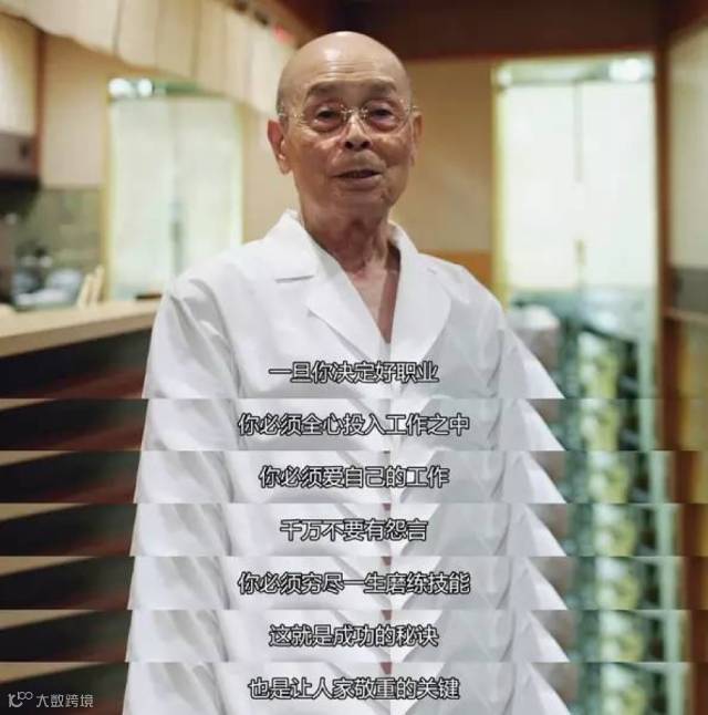 小野二郎,日本寿司之神,在九十多岁的年纪仍在做寿司。他的寿司没有什么特殊的花样,简单的来说就是追求极致的简单,每个步骤都精益求精,才会成就真正的美味。他有一句话,值得与每个人共勉,“职人的精神就是一辈子只做一件事,并且把这件事做到极致。”