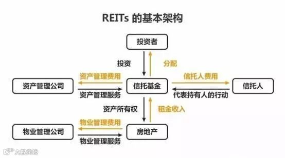 简单来说,REITs就是我想在小区里面买一栋商务楼作为出租使用,但是手里的钱不够,我就和亲戚朋友借钱,用来买楼、装修、付物业费等,我将楼装修好了,很快租了出去,楼就不断的升值。到了年底,我算出过去一年的收益,将收益分给借给我钱的亲戚朋友们。政府为了房地产业的发展,鼓励我这么做,同时为我免去了相关的税,但是,他也强制要求我必须每年将全部收益的大半部分拿出来分给借给我钱的亲戚朋友。