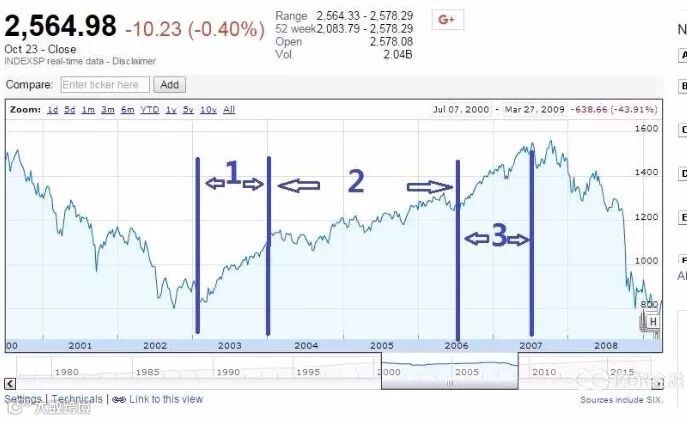 2007年,在经历了2004年到2006年的稳定期后,美国股市开始进入了陡峭上升期。在市场纷纷加仓,大赞“这是美国经济最好的时代”后,美股终于冲顶。