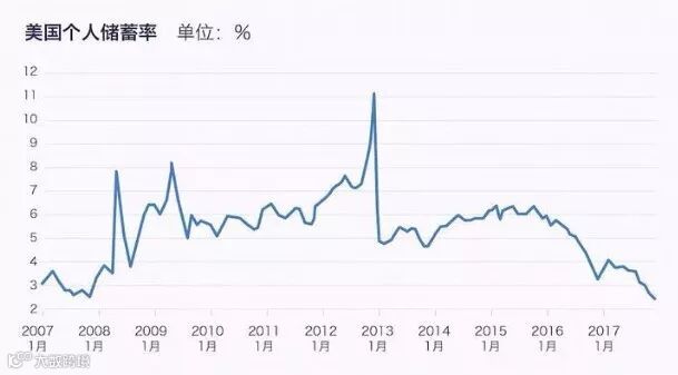 美国商务部上周公布的这一报告该引起大家的警惕。报告显示,去年 12 月美国家庭可支配收入的储蓄率下降至近 12 年来的低点,只有 2.4%。