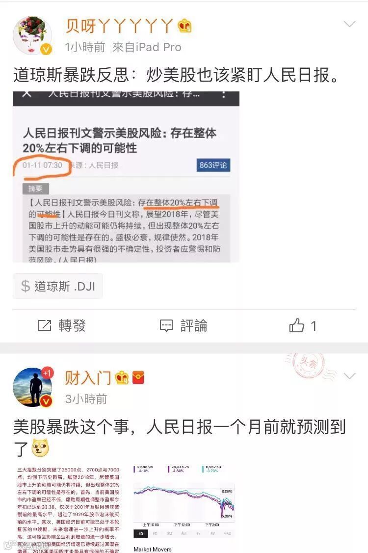 我国央媒《人民日报》今年开年就预测出来了,“尽管美国股市上升动能将持续,但总体出现20%左右下调的可能性是存在的。”