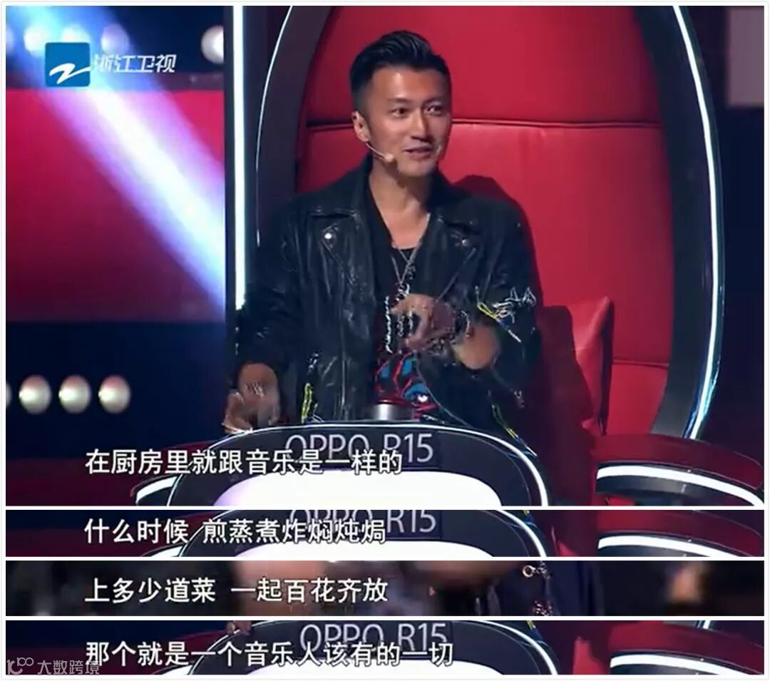 在盲选抢人阶段, 当选手康树龙说自己是个厨师的时候,正中霸道总裁谢霆锋的胃口,原来话不多的他,一下子来了兴致,滔滔不绝地说起做菜和音乐的关系: