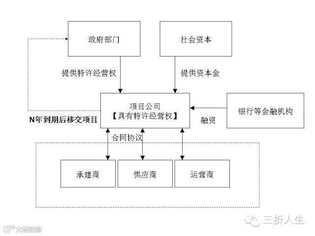 3、转让(T):政府对基础设施有监督权、调控权,特许期满,私人企业将该基础设施无偿或有偿移交给政府部门。