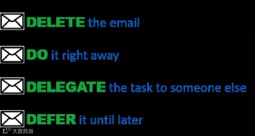 在读每一封邮件时就判断应该如何处理。如果邮件里的事你需要去做,要不就赶快去做,要不就把它加入计划单,然后把邮件归档或删除。以每天清空你的邮箱来要求自己。