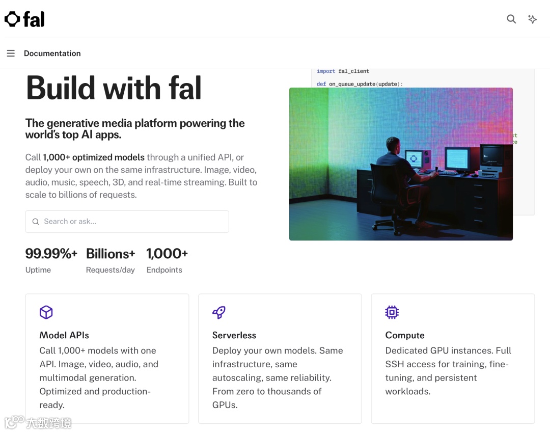 Fal在2021年成立于旧金山,运营高性能API平台,通过分布式计算调度35个数据中心的异构GPU,托管数百个图像、视频和音频生成模型,服务超50万开发者,每日生成内容超5000万条。