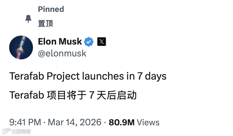 马斯克宣布特斯拉自研AI芯片的Terafab项目将于2026年3月21日正式启动,标志着特斯拉从芯片设计跨入自研自产阶段,为自动驾驶、Optimus人形机器人及xAI等生态提供算力保障。