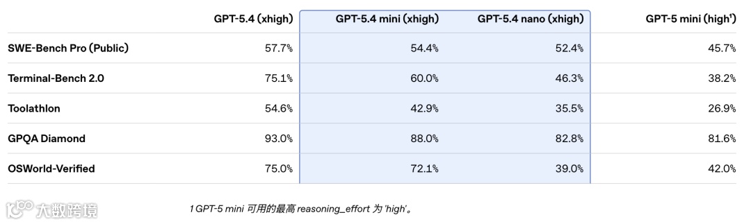 OpenAI推出专为高频、低延迟任务设计的轻量级模型GPT-5.4 mini和GPT-5.4 nano,其中mini模型在多项基准测试中性能逼近满血版大模型,运行速度快2倍以上,输入价格仅为每百万Token 0.75美元。