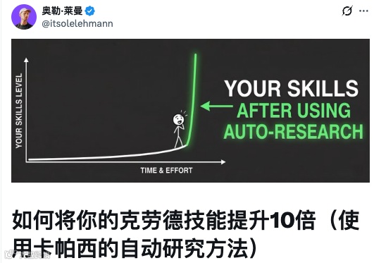 "Autoresearch"来自Andrej Karpathy——OpenAI联合创始人、前Tesla AI负责人、"vibe coding"概念的提出者。