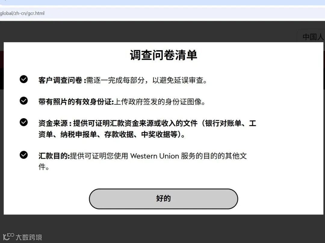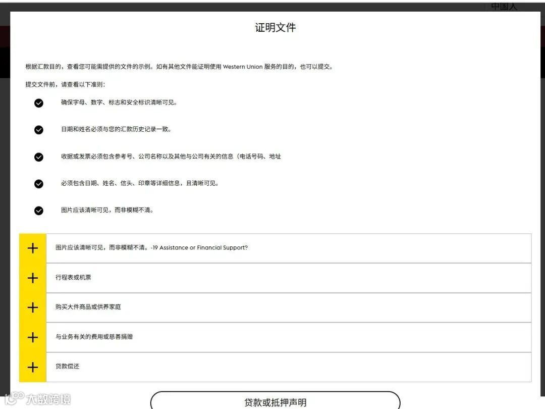 按西联要求补充身份证明或用途说明