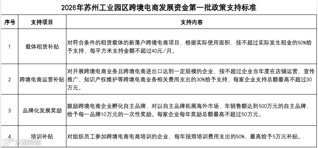 依据《苏州工业园区关于促进新型贸易服务发展的实施细则》(苏园商〔2026〕3号),园区正式启动2026年度跨境电商发展资金首批申报工作。