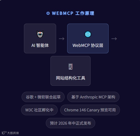 2026年2月14日,谷歌与微软联合发布WebMCP(Web Model Context Protocol)协议草案,计划年中正式发布。该协议解决AI智能体访问网页低效问题,允许网站通过HTML属性或JavaScript API向AI声明功能。