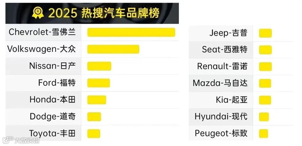 - 热搜品牌:雪佛兰、大众、日产、福特、本田