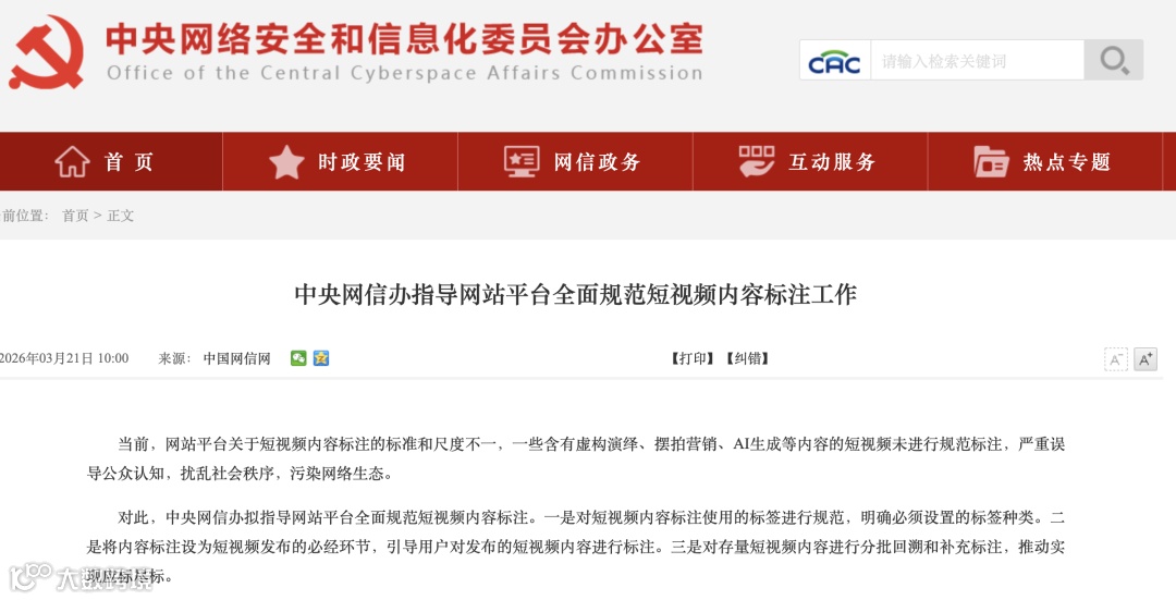 中央网信办规范短视频内容标注