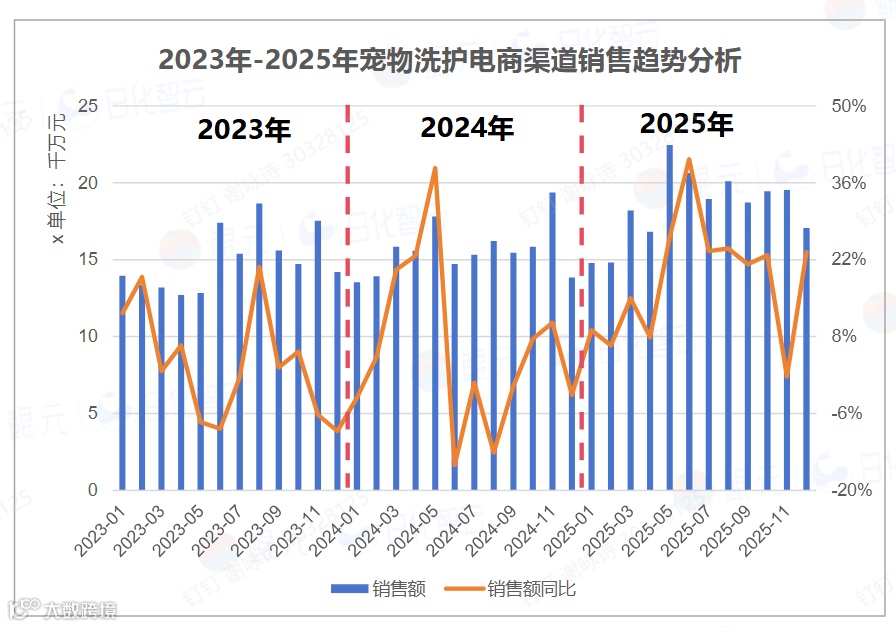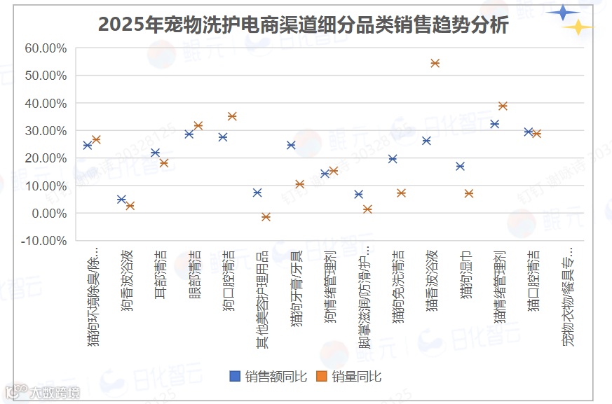 2024年宠物洗护市场处于以价换量阶段,销量增24.5%仅带动销售额增4.4%,高度依赖大促低价。2025年转向量价双升,销售额增速(18.2%)反超销量增速(17.3%),功能升级与场景深化成为新增长引擎。