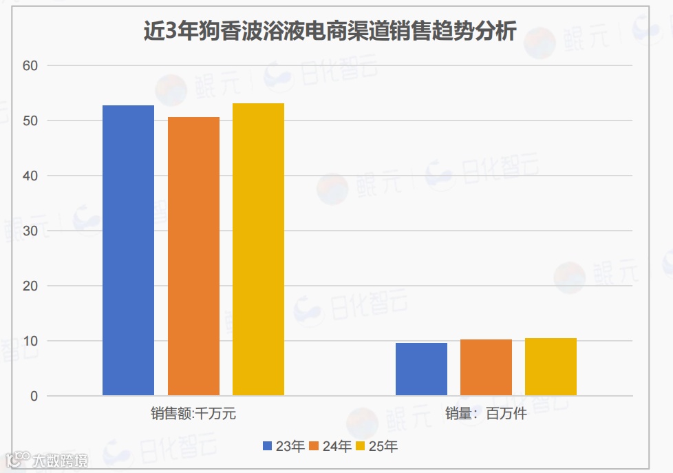 2024年销量增31.7%但销售额仅增4.0%,均价承压。2025年销售额达5.33亿元(同比增长24.6%),销量15.23百万件(同比增长26.7%),标志品类脱离促销依赖,进入结构升级驱动增长新周期。