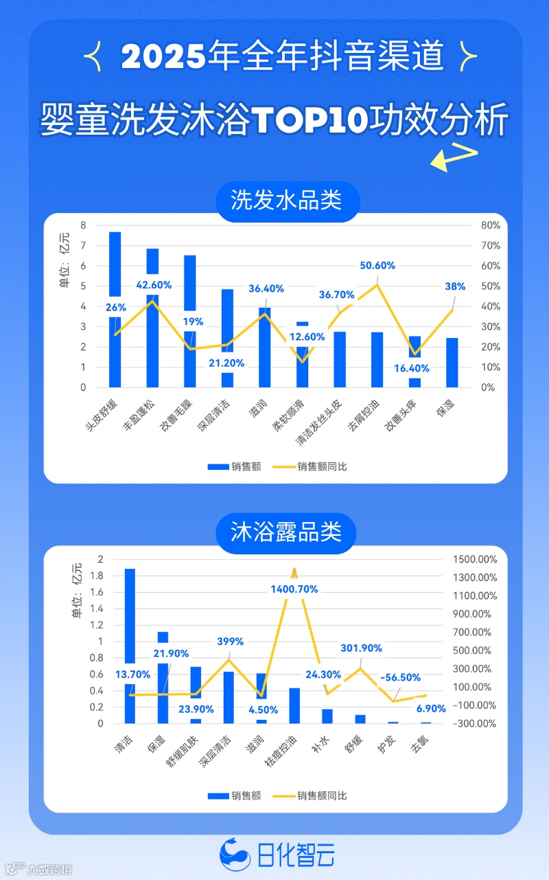 2025年抖音渠道婴童洗发沐浴市场表现强劲,全年销售额超17亿元,同比增长57%;销量达3268万件,同比增长48%。
