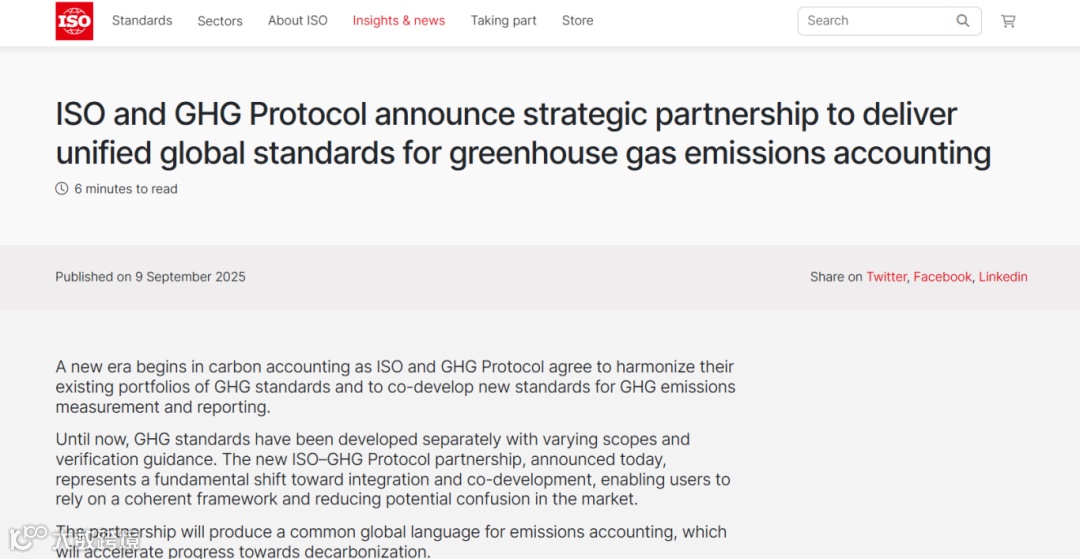 在应对全球气候变化的征程中,碳核算作为衡量温室气体排放的关键工具,一直扮演着至关重要的角色。长久以来,由于缺乏统一的核算标准,全球各地的企业和政策制定者在温室气体排放的测量、报告和验证过程中面临着诸多挑战。如今,这一局面即将迎来重大转变。2025年9月9日,国际标准化组织(ISO)和温室气体核算体系(GHG Protocol)共同宣布建立一项具有里程碑意义的战略伙伴关系,这项合作预计将为全球碳核算领域带来深远变革,开启一个全新的时代。